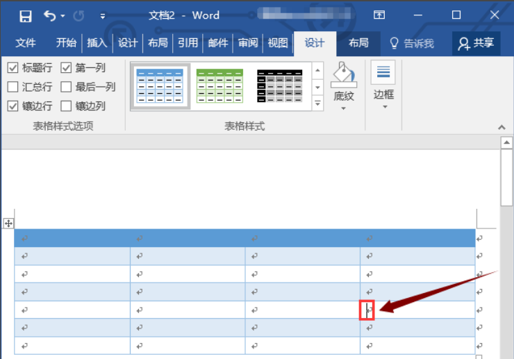 2、接着单击“设计”,操作如下图,选择其中一个表格样式。