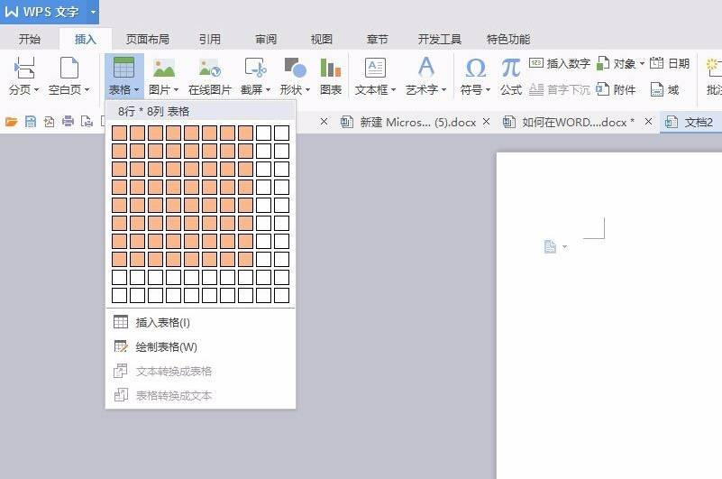 2、或者选择【插入表格】,在【表格尺寸】下输入列数和行数