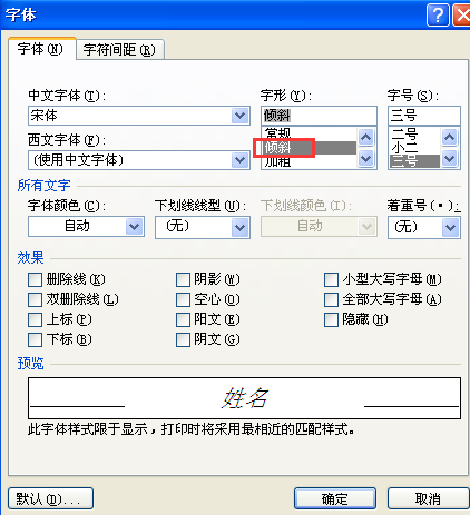 3、在弹出的字体对话框中,在字形处选择倾斜即可,如图所示。