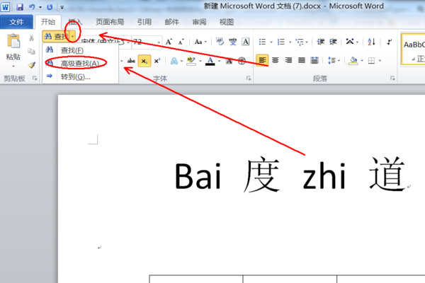 1、打开需要操作的WORD文档,在开始选项卡中找到并点击查找后面的下拉按钮,然后选择“高级查找”。