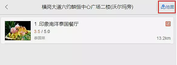 2、点击选择符合搜索条件的结果,并点击右上角红框圈住的地图链接,如没有相应地址,请自行在百度地图进行商户标记。
