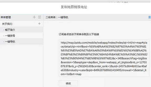 大多数朋友在做微信公众号的时候,希望在自定义菜单处添加一个地图,可以实现地图一键导航更放,便于访问者快速找到公司或者店铺,但怎么在公众号添加地图导航,微信一键导航的添加方法可以帮助大家: