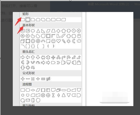 4、点击矩形和基本形状。