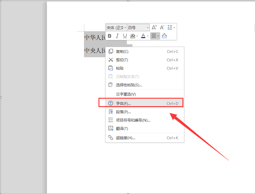 3、在光标处右击找到字体,点击进入