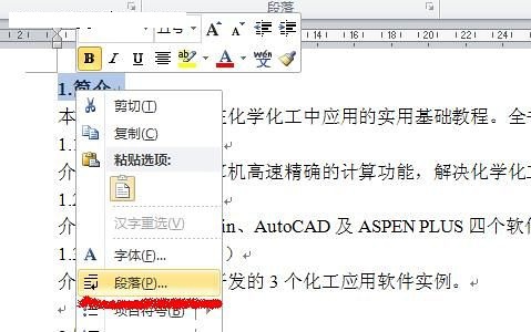2.首先对作为目录的文字进行设置(如下图中的“1.简介”)。