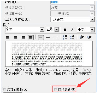 3、在“修改样式”对话框中取消或勾选“自动更新”即可关闭或开启该功能。