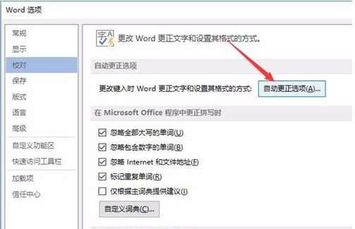 4、在弹出的页面中,鼠标左键单击自动更正选项(A)选项: