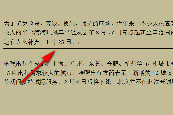 三、双直线:将光标定位到两段文字中间后,连续输入三个以上半角“=”符号,然后,回车就可得到一条双直线。