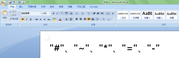 一、用特殊符号"#"、"~"、"*"、"="、"-"来插入即可