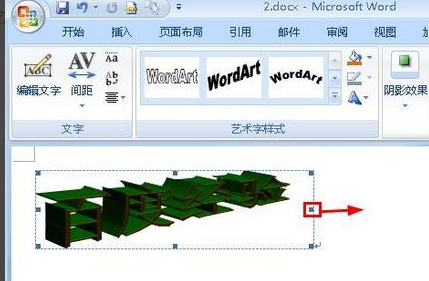 4、拖动艺术字周围的小四方形就能够改变艺术字的大小;