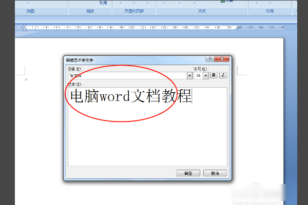 3、弹出编辑艺术字的对话框,例如输入百度经验这几个字,然后点击确定按钮;