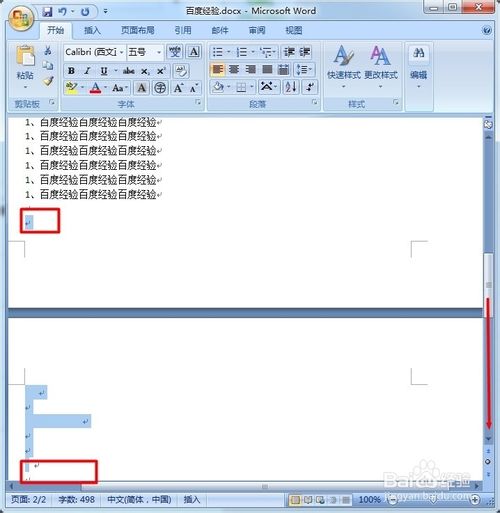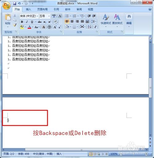 方法一:如果空白页在最后一页,可以先将光标定位到最后一页,然后按键盘上的“Delete”或“Backspace”键来删除空白页,如下图。