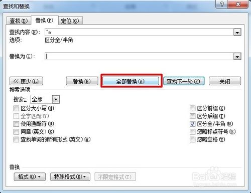 3 选择“替换”点“高级”,在里面选择“使用通配符”以后下面有一个“特殊字符”字的开头,按住shift的时候再点下鼠标,选择空白页,再删除(解决了我的问题)