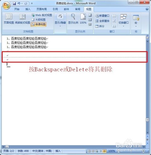 方法一、最简单的,直接按键盘上的BackSpace或者Delete键,来进行删除。