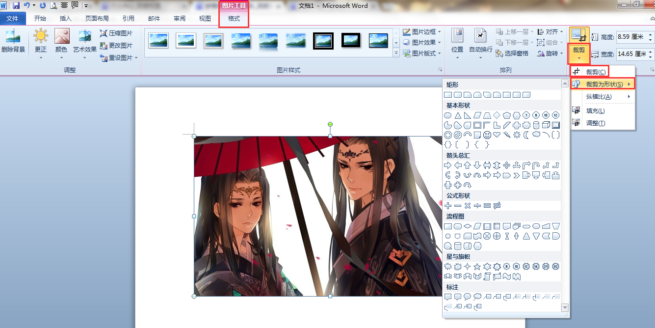 在Word中,图片裁剪工具在图片工具格式选项卡上,裁剪工具的使用方法:
