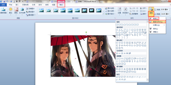 word里面的图片裁剪快捷键或菜单在哪里呀