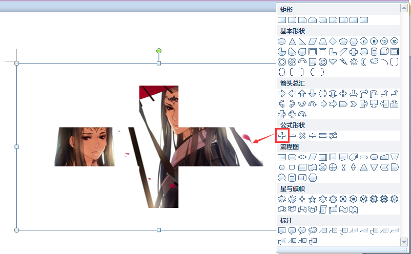 下面给大家操作图片转为形状样式。单击图片来选中图片,接着单击上方图片工具“格式”选项卡,单击“剪裁”的下拉按钮,选择“剪裁为形状”,然后选择需要的形状即可。