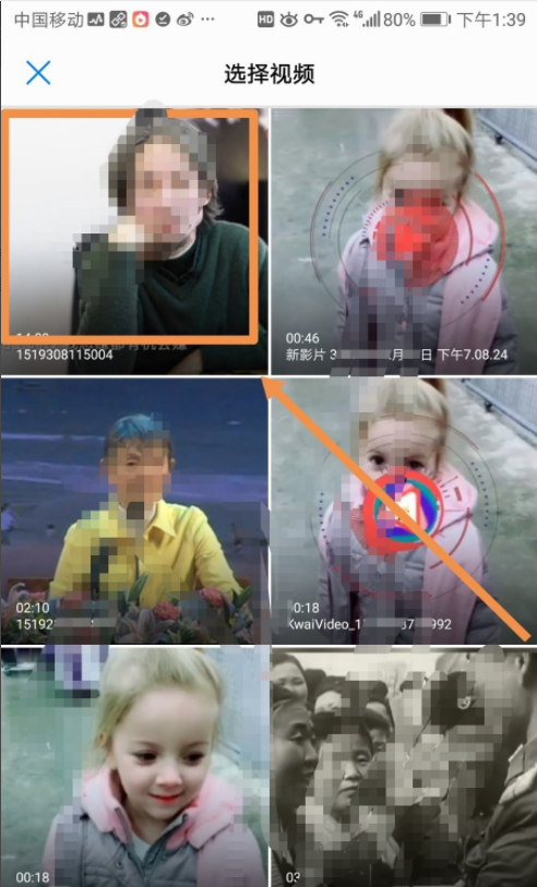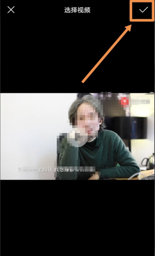 3.接下来界面转入选择视频界面 ,点按其中需要添加到应用进行提取音频的视频,选择好视频之后点按界面右上方的对号标志,如下图所示。