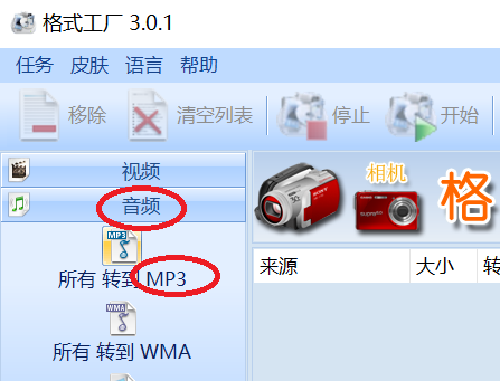 可以通过将视频文件转换为音频文件的方式,实现把音频从视频里分离的目的。以转换软件“格式工厂”为例。