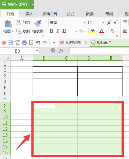 第一步:用按住鼠标左键,框选出所要增加表格线的表格范围、。