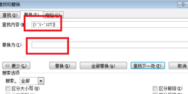 3、之后在查找内容栏里填写 [!*1-*127] (注:填写时必需确保在英文状态下)