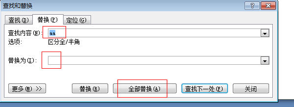 2.替换——查找内容中填入要删除的字符——替换为空——全部替换,如图: