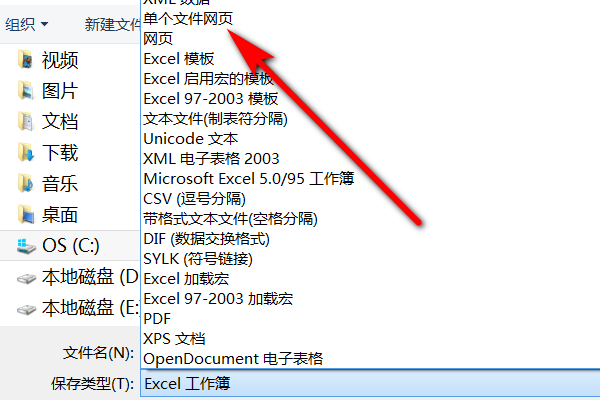 6.接着在保存类型里面选择word文档方式,这样就可以将excel中表格转化成word。