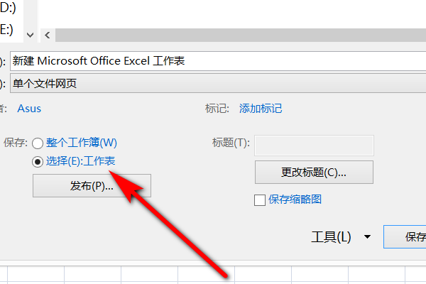 3.点击了之后,再在下面的保存里面点选选择(E):工作表,然后点击保存。