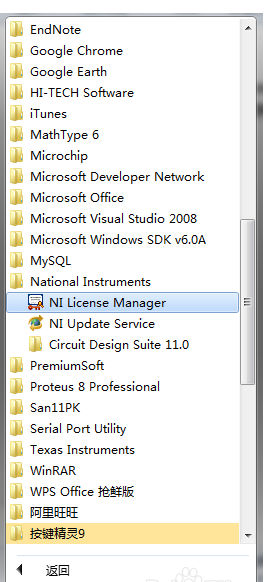 3.然后到开始菜单打开NI license manager(NI许可证管理器);