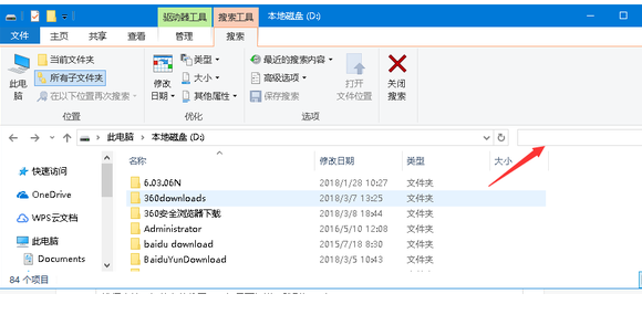 3、在右上方的搜索栏中输入.doc即可。