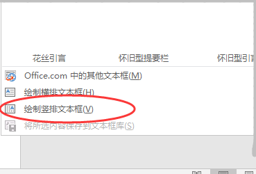 4、就会出现一个下拉的菜单,在下拉菜单里面找点击绘制竖排文本框。