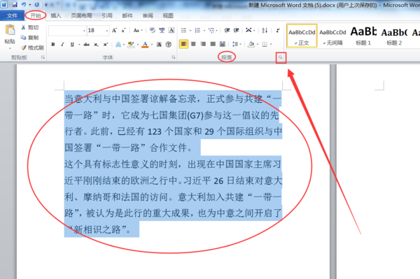 ①选中全文,然后进入“开始”选项卡,然后点击“段落”选项卡中的小按钮,如下图红色圈;