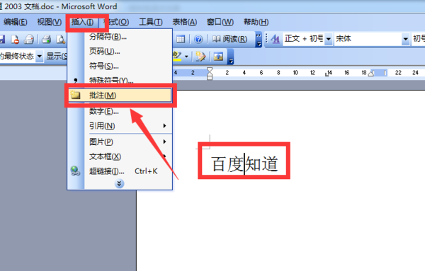打开word文档,将光标定位在需要加入批注的文字内容上,点击”插入“,选择”批注“;