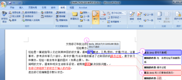 当有修订时,有人必须审阅然后接受或拒绝修订。审阅者可以一次处理一处修订或同时处理所有修订,并可以阅读批注然后删除。