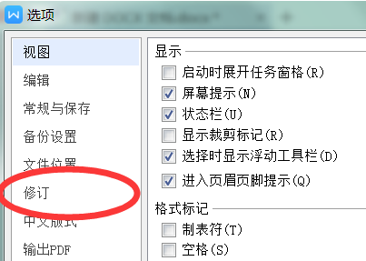 3、在打开的选项对话框中选择左侧菜单栏中的“修订”选项。