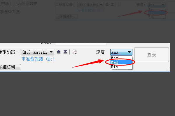 将空白CD刻录盘放到驱动器之后,点击右下角的"刻录"按钮,即可开始刻录. 默认的刻录速度为所选择刻录机的最高速度,如果出现刻录失败或者刻录的光盘读取错误,你可以尝试选择最低刻录速度(min)刻录,会更加保险.
