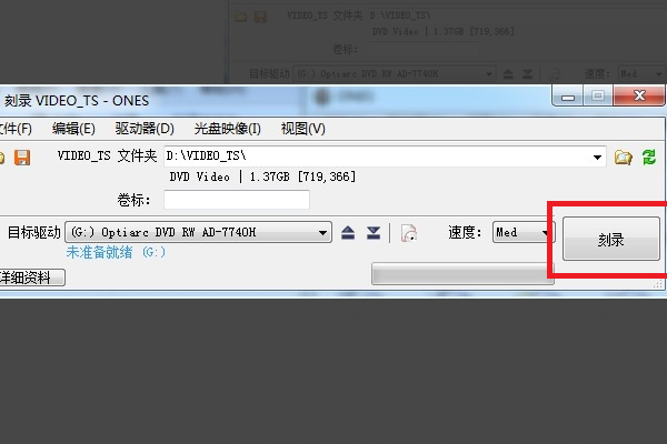 6、最后,单击右下角的刻录按钮即可成功使用ones将文件刻录到DVD。