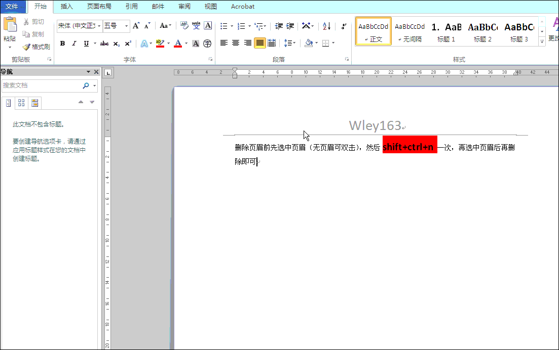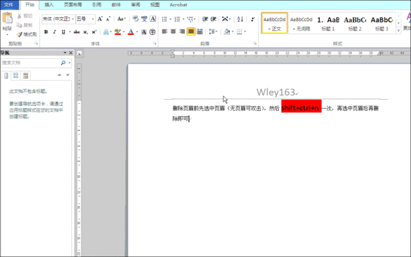 那么就这样:删除页眉前先选中页眉(无页眉可双击),然后shift+ctrl+n一次,再选中页眉后再按退格键即可删除的跟没加过页眉一样。看下图(GIF图需点击打开观看)