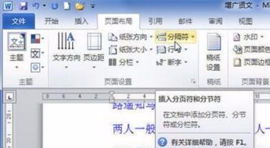 1、在这一页的前一页的尾部,单击页面布局,选择分隔符命令;