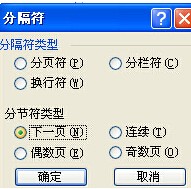 2、弹出分隔符对话框,在分节符类型处选择下一页,如图所示;