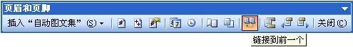 5、弹出页眉和页脚工具,单击链接到前一个按钮,断开与前一节的联系,如图所示。