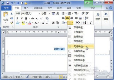 3、单击“开始”,在“段落”中单击边框线下三角按钮。