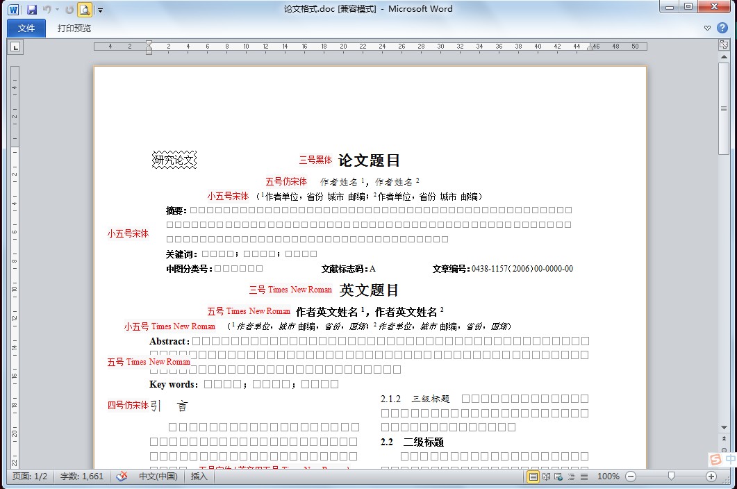 材料/工具:word2010