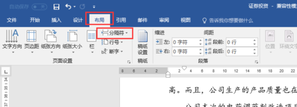 3. 然后,选择“布局”——“分隔符”。