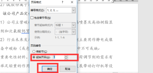 9. 如图是打开的页码格式对话框,因为是第三页标注为第1页,则需要在页码编号处选择“起始页码”,并在后面选择1。然后点击确定。