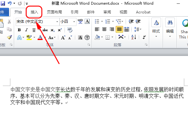1、先打开word文档,以下图为例,点击开始菜单栏上方的”插入“;