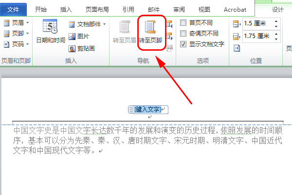 4、然后点击”转至页脚“;