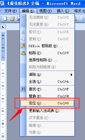 第一步:在编辑菜单下选中“定位”。