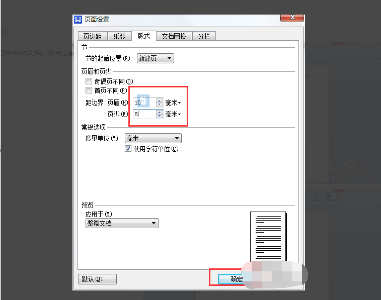 可以在页面设置-版式中调整页眉页脚距边界距离