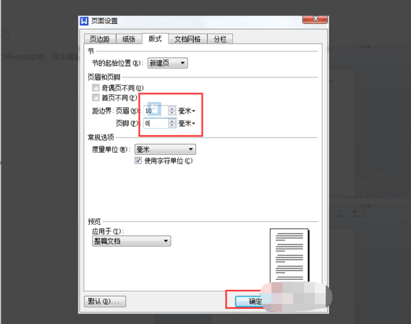 7、然后,可以看到有据边界这一选项后面有页眉和页脚的高度设置。